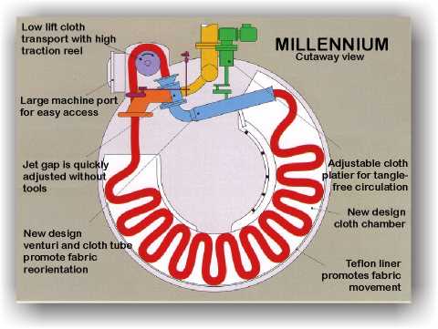 abrasion-free, minimum tension cloth transport to the jet.